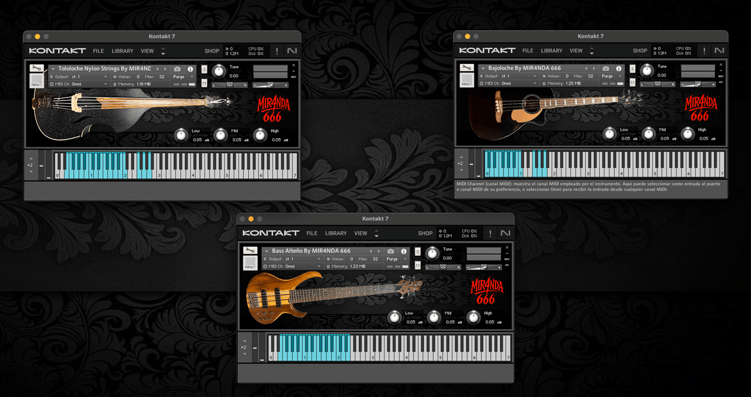 Este paquete reúne tres instrumentos fundamentales en la música mexicana: bajoloche, bass y tololoche. Grabados con detalle y expresividad, cada instrumento aporta su carácter único: