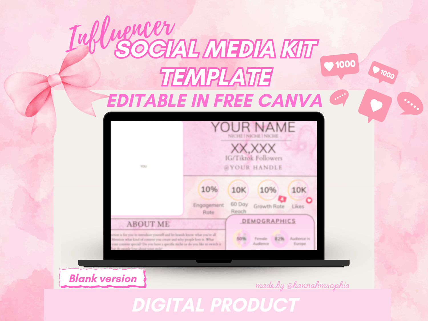 Create your dream media kit with ease! This beginner-friendly Blank Influencer Media Kit Template is fully editable in FREE Canva and perfect for influencers, UGC creators, bloggers, and content creators who want a polished, professional kit—without needing design experience.