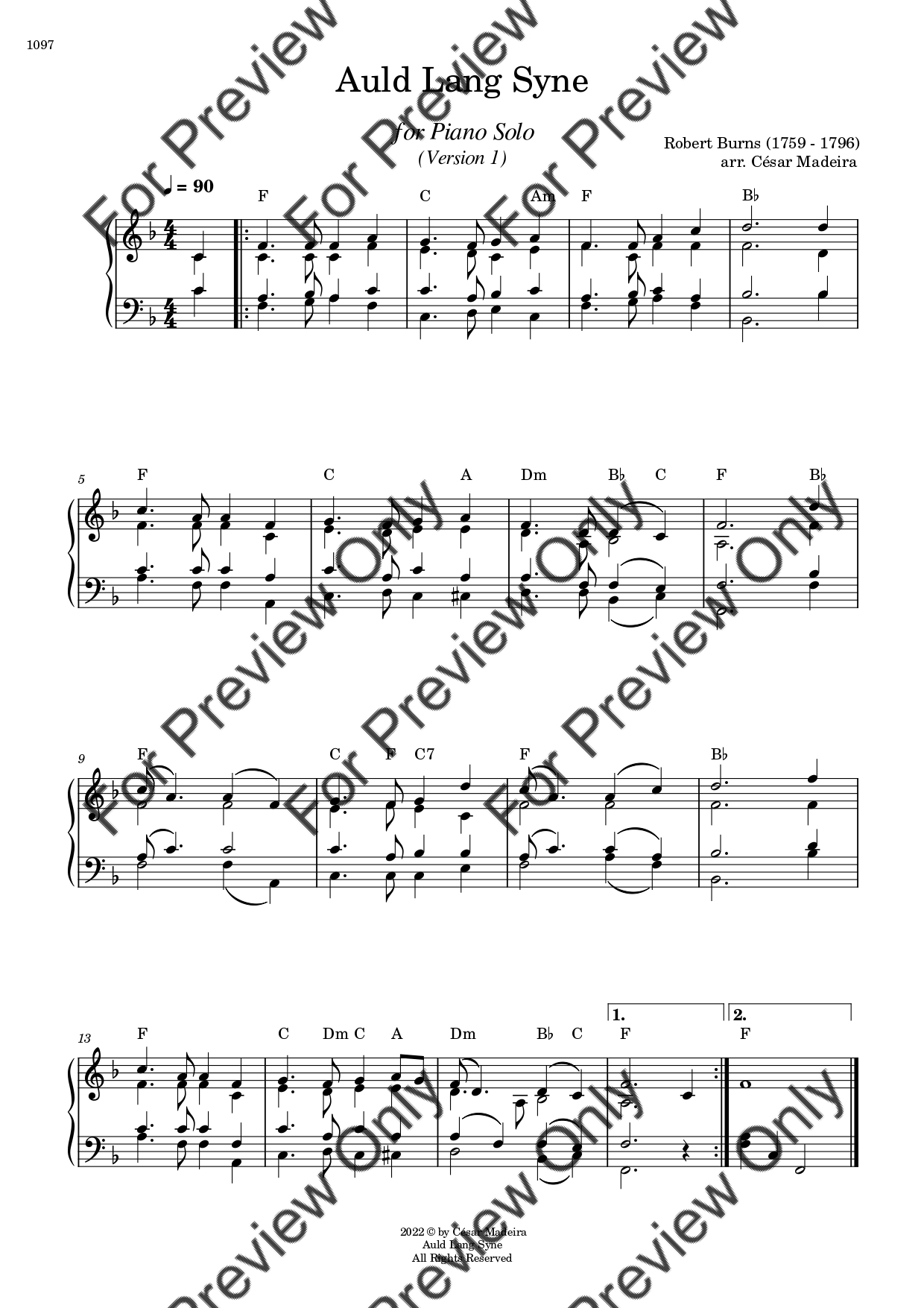 Auld Lang Syne by Robert Burns. Arrangement for Piano Solo. With Full Score. Have fun!