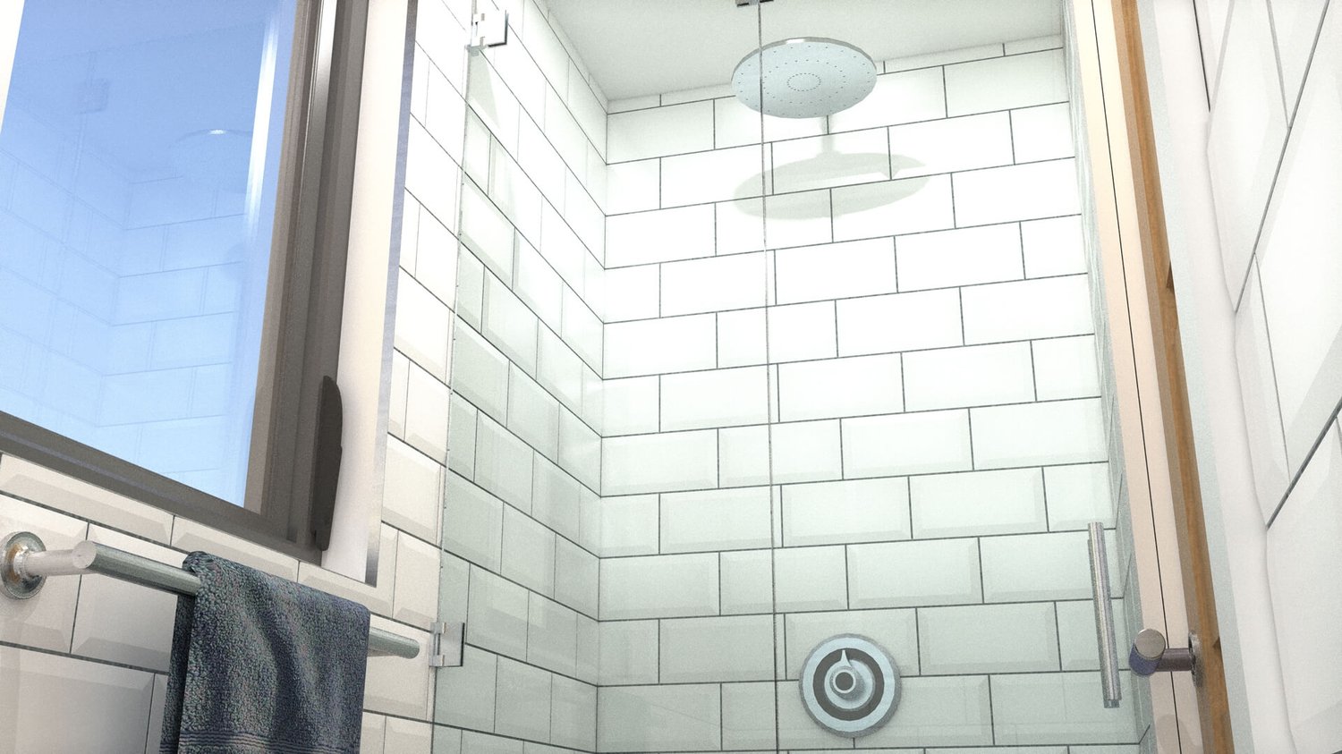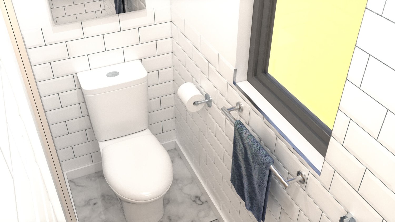 Our tiny house boasts the largest bathroom in our collection, measuring 3 feet by 7 feet. This ample space accommodates a variety of shower and toilet setups, providing both comfort and practicality. Ingeniously designed partition walls between the kitchen and bathroom house recessed cabinetry, providing a clever storage solution for smaller items.