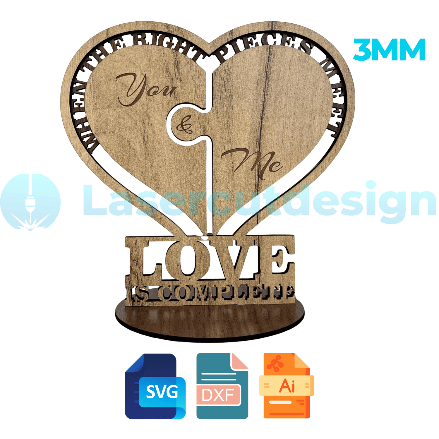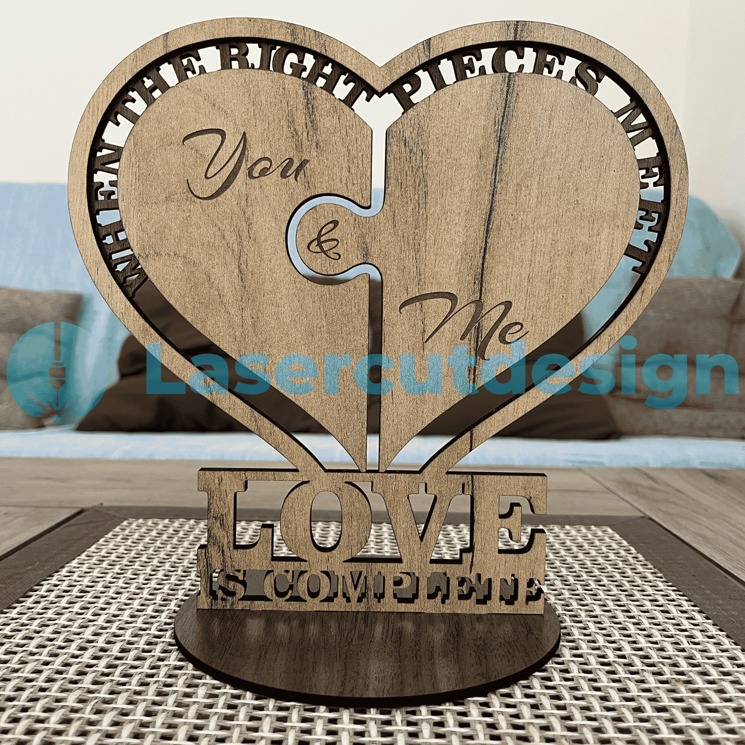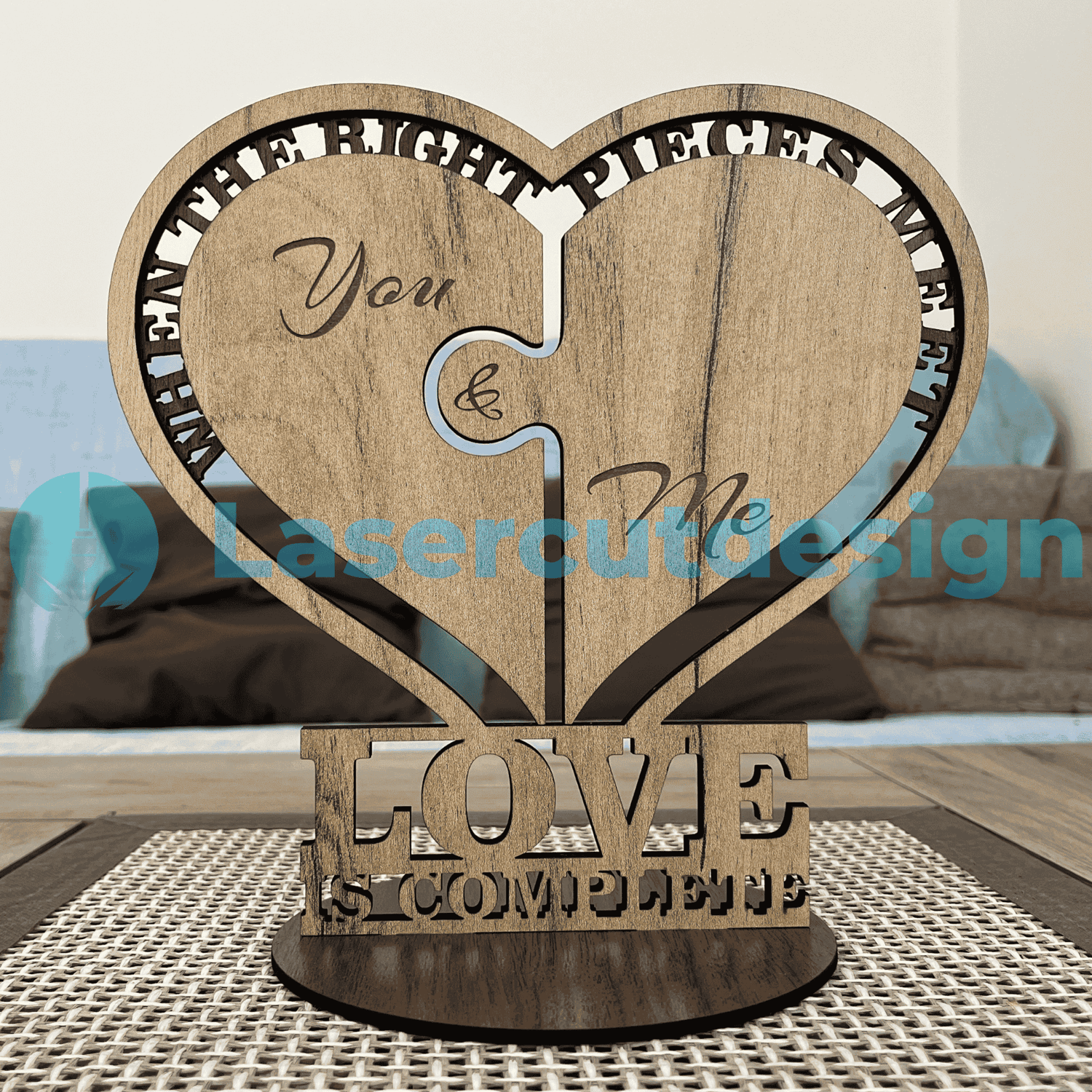 Puzzle Heart SVG DXF AI | You & Me Love Laser Cut File | Love Is Complete Sign | Valentines Day Decor | Wedding Decor 3mm
