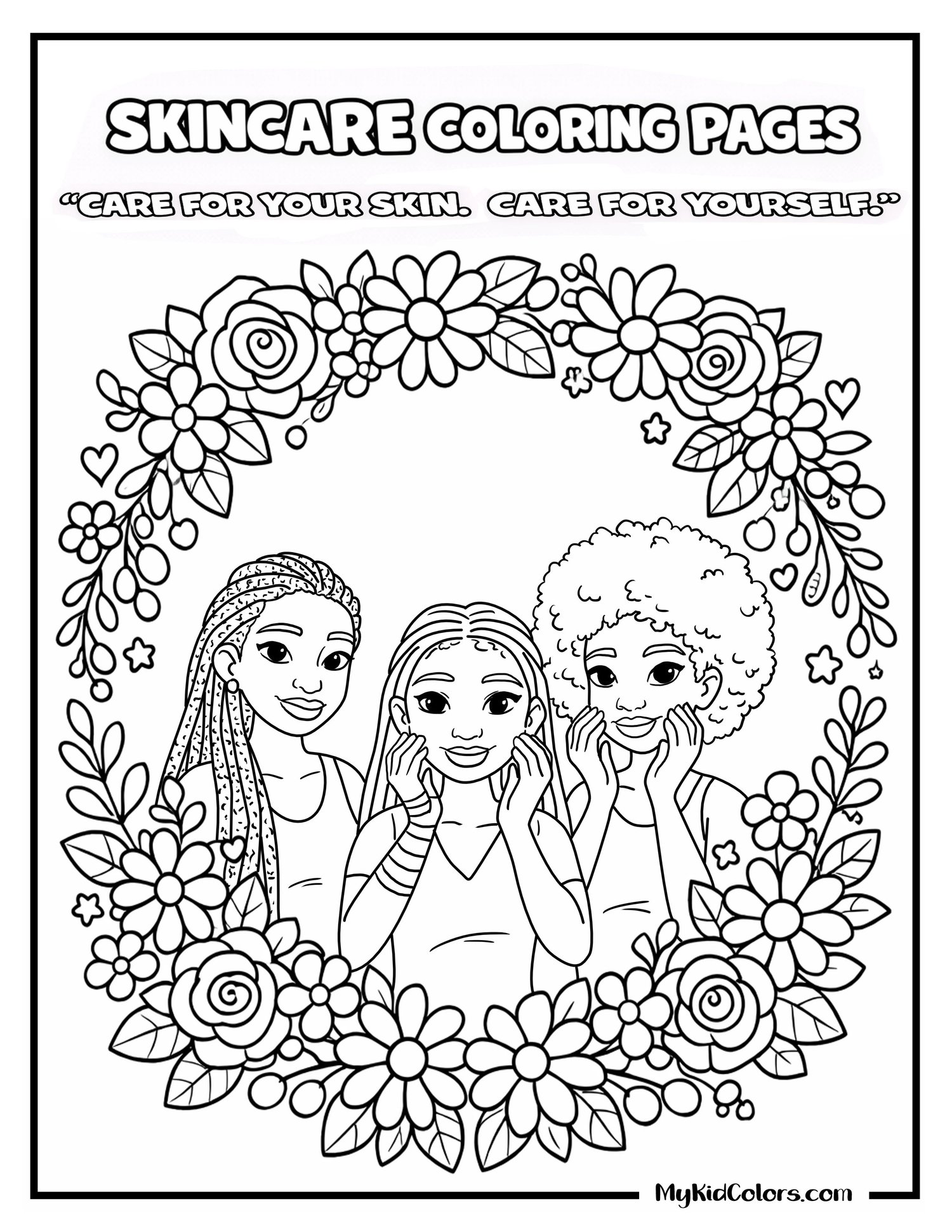 FREE Hand-Drawn Inclusive Skincare Coloring Pages for Kids (Black & Brown Self-Care Printable Pack)