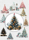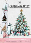 Beautiful Christmas trees, 10 trees. 2 gold, 2 black, 2 blush pink, 2 white, 2 traditional green. High quality PNG. Instant Download