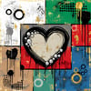 A bold geometric pop-graffiti artwork featuring a large central heart outlined in expressive black strokes. The design blends abstract expressionism, pop art, and urban graffiti street art, with vibrant color blocking, textured details, and gold accents. Perfect for scrapbooking, canvas prints, posters, or statement wall art, and so much more.