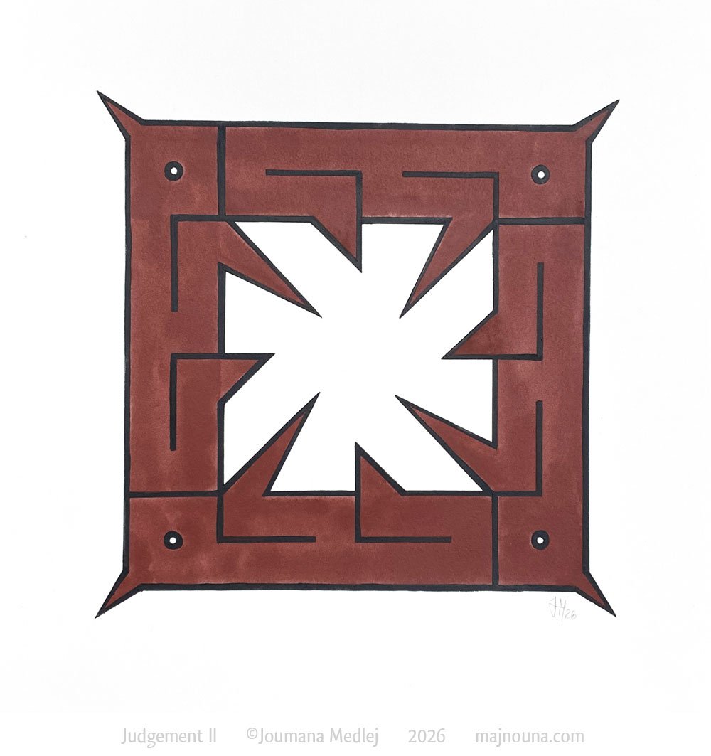 Red earth pigment from Hormuz and mineral black in gum tempera on 300gsm paper. 28x28 cm.