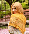 Inspired by the first pattern I ever published, the Dungarees Cowl, this shawl combines two different takes on an openwork knot stitch with lateral braids and bands of gathered stockinette. Worked from the top down in a traditional triangle shape, the shawl pattern includes two sizes, so you can make the most of your skein of yarn.