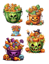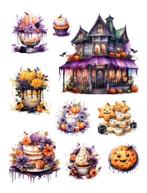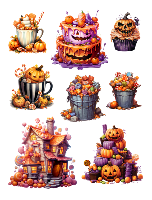 Pull out your scissors and glue and dive into the magical world of spooky sweet treats ephemera featuring candy, buckets and baskets of trick or treats, lollipops, donuts, cakes, goblins, cute animals including cats and dogs, dragon, pumpkins, ghosts and goblins and much more with this artistically beautiful clip art cut and collage book.