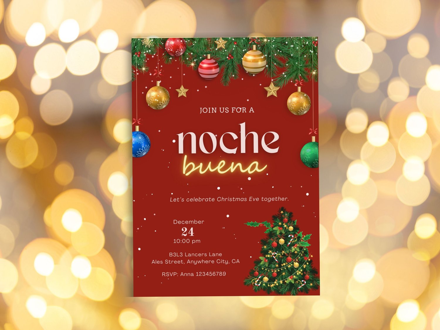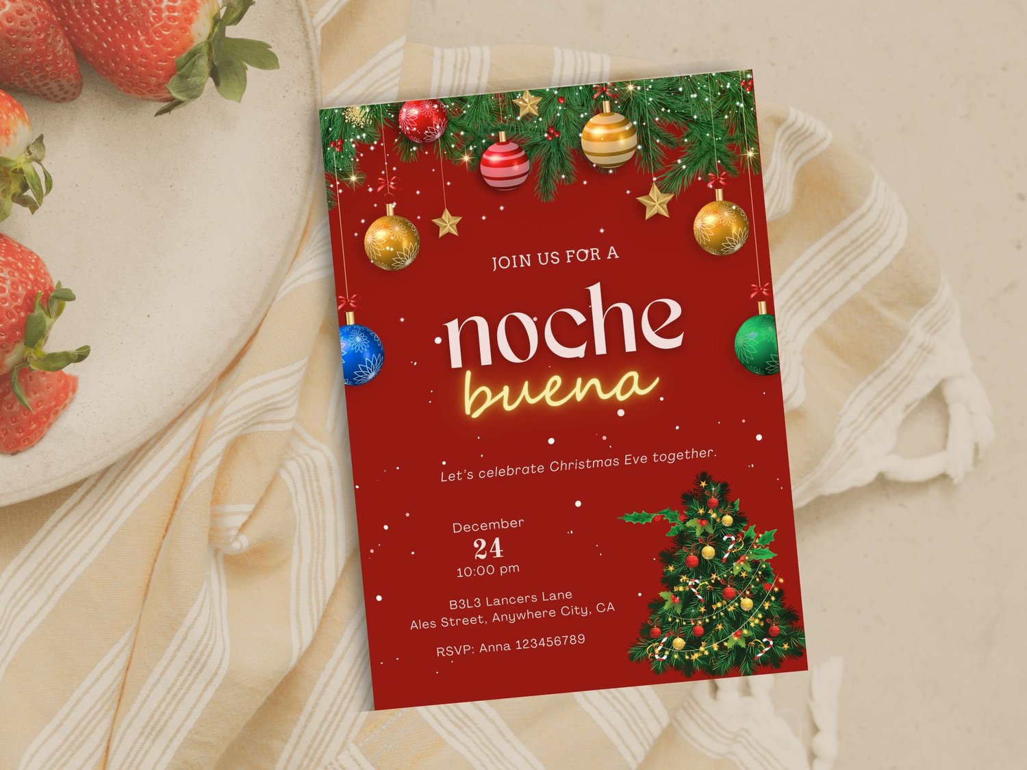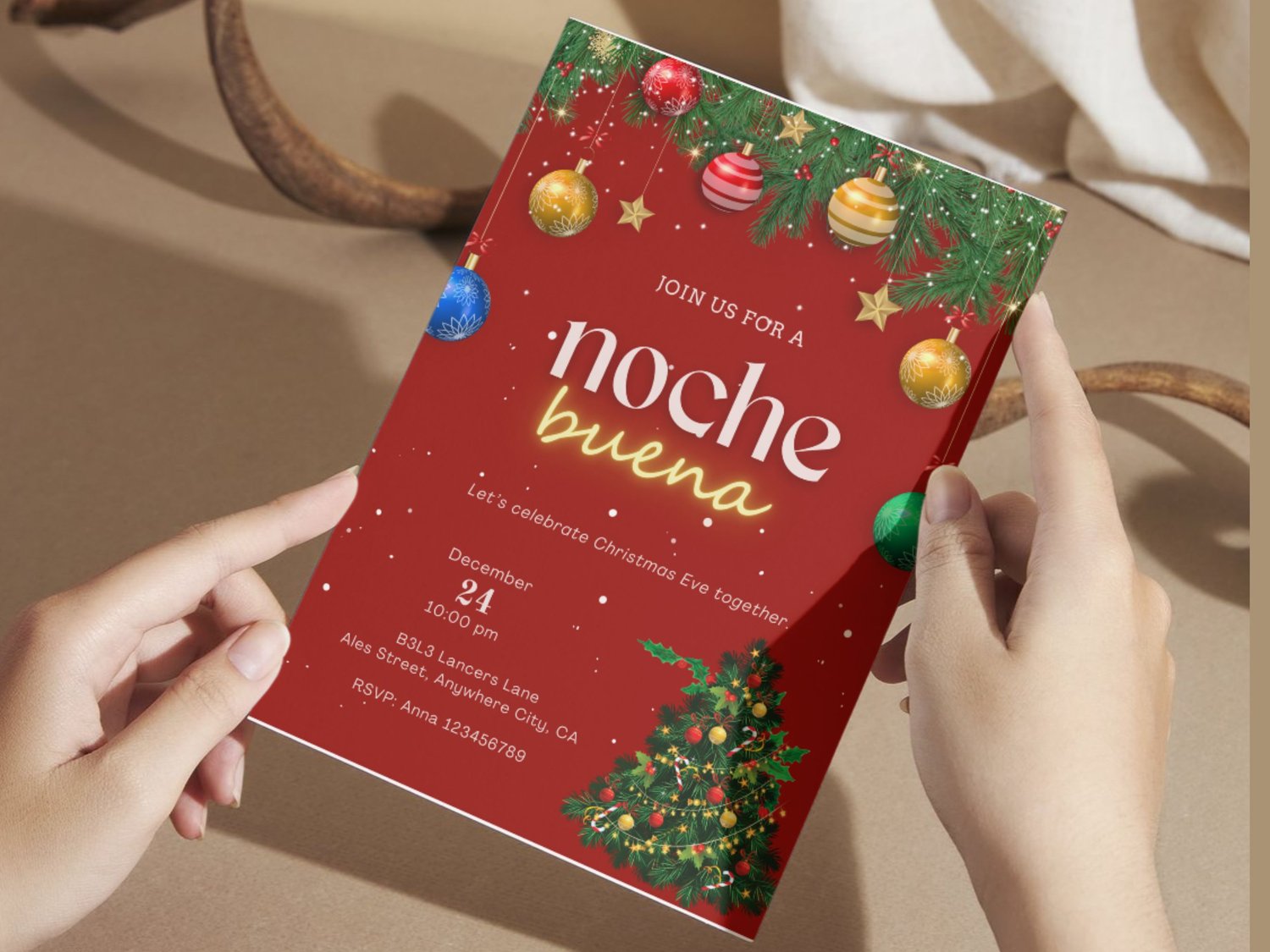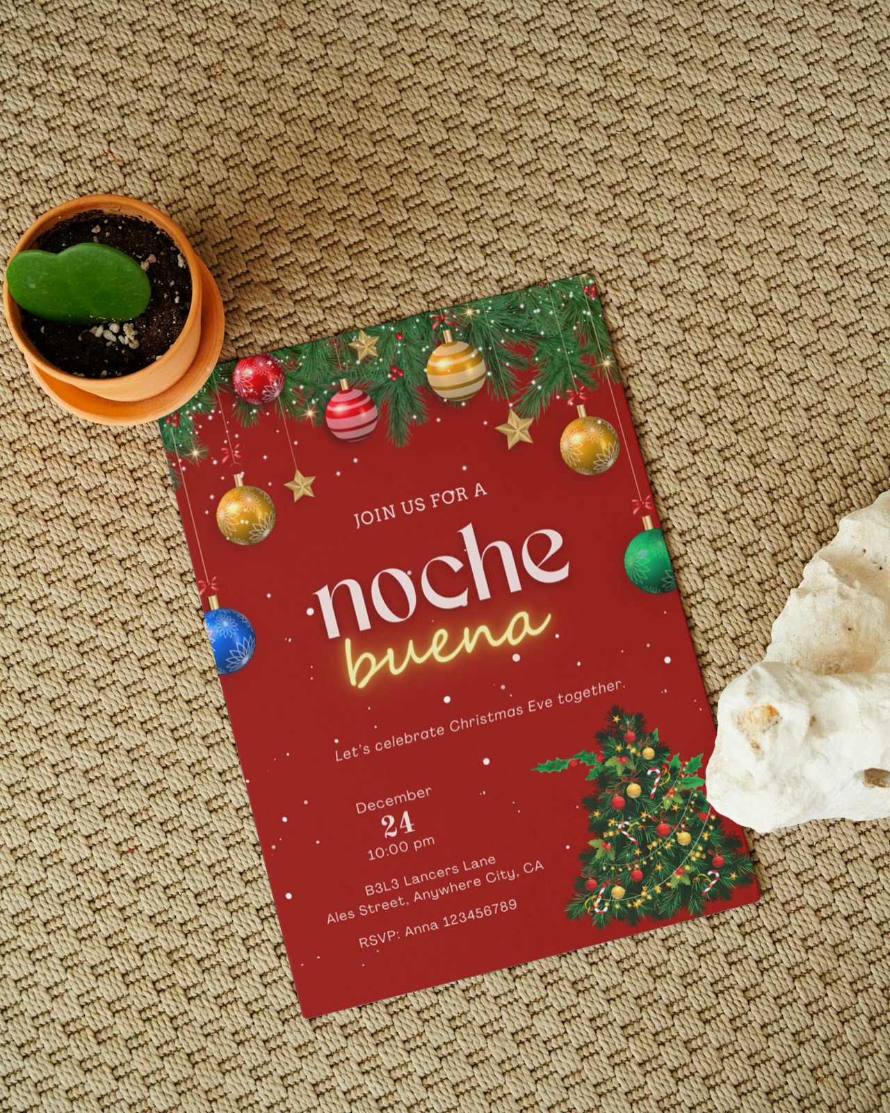 This Festive Theme invitation is perfect for your upcoming Noche Buena Celebration!