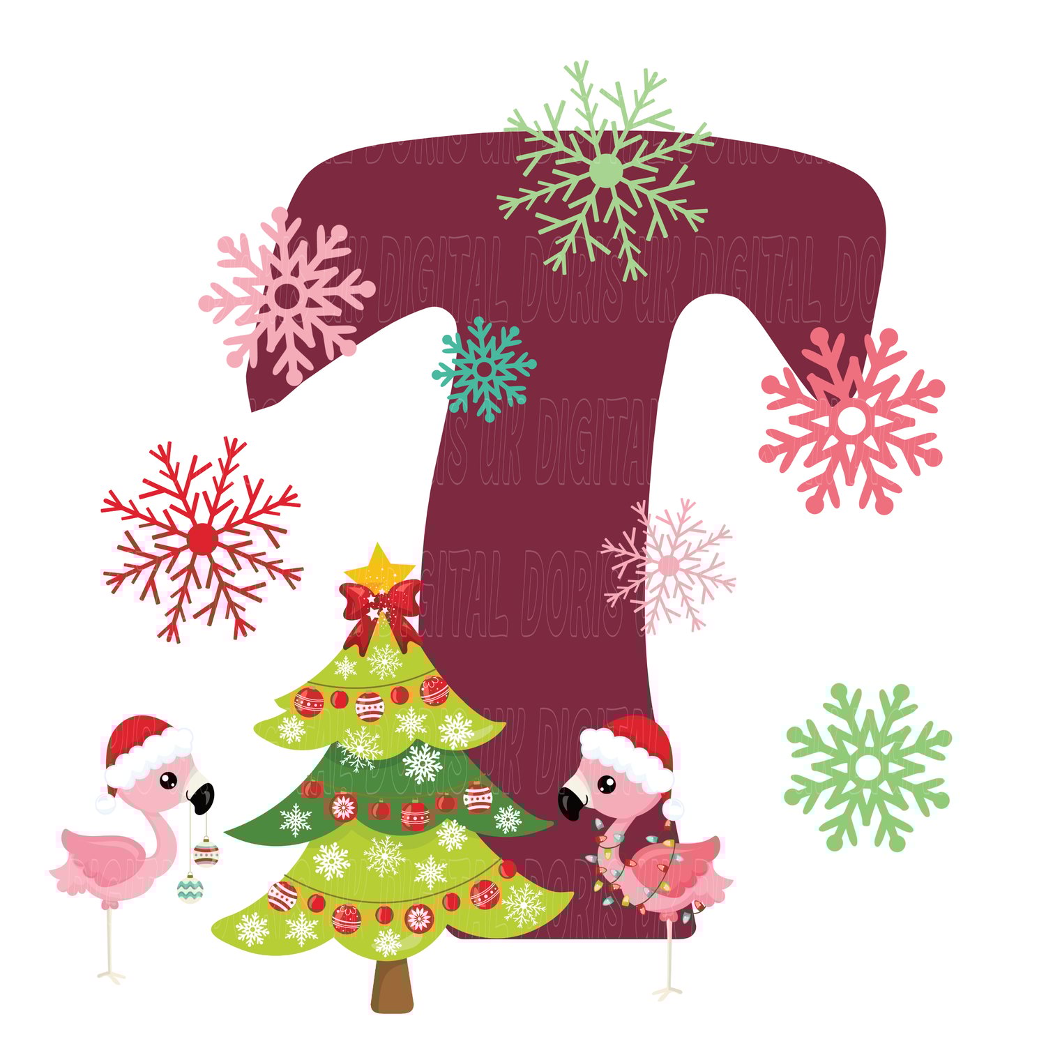 Flamingo Christmas with tree and snowflakes - Maroon - Alphabet Set Digital Download 26 PNGs