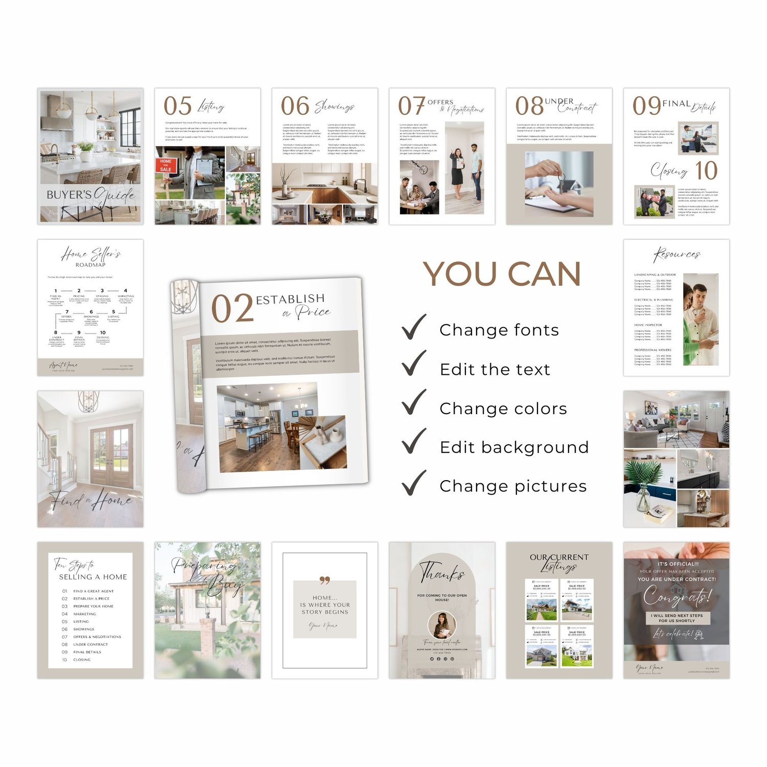 Real Estate Guide Template Bundle for Realtors | Home Buyer & Seller Guide Canva Templates