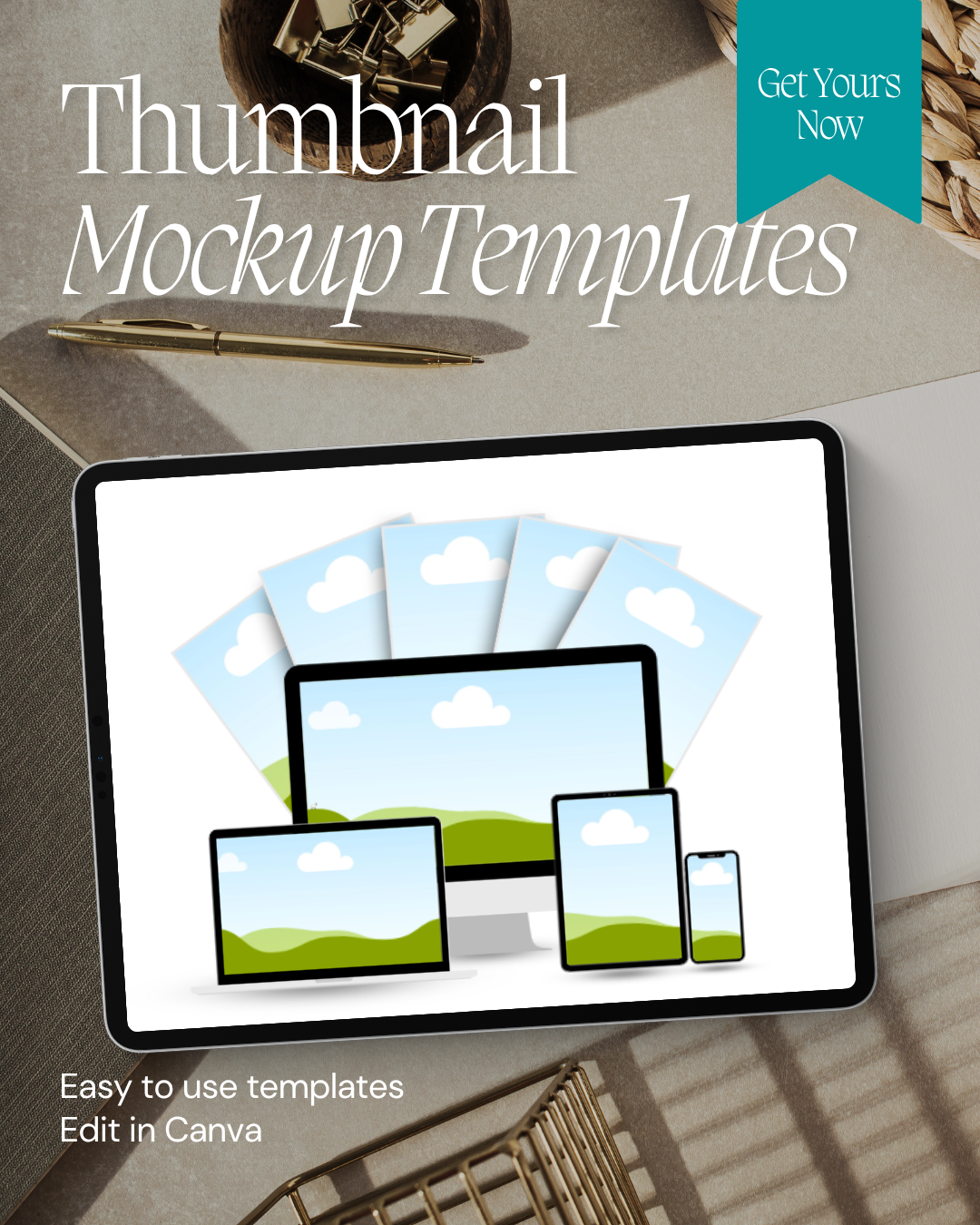 Stand out online with professional, eye-catching thumbnails! This pack includes 14 fully editable Canva templates that make it easy to create stunning visuals for YouTube, courses, social media posts, and digital products — no design skills required.