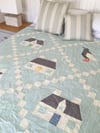 A quilt inspired by the beautiful Scottish island, its whitewashed Croft houses, drystane dykes and the scarlet-legged Black Guillemot, known locally as a Tystie...