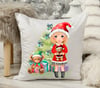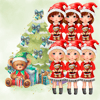 Cute Christmas Chibi girl holding toy teddy bear. 6 girls plus FREE background. Eye and hair colour options. Sublimation, print. PNG