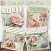 Vintage Green Envelopes, Tea Bags, Floral Gift Bag, Dragonfly Bag, Enchanted Garden Paper Crafts, Shabby Chic Floral Scrapbooking