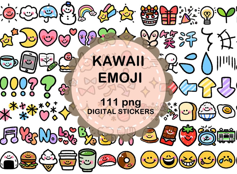 π 111 PNG Kawaii Cute Emoji Food Weather Mood Digital Sticker Pack π