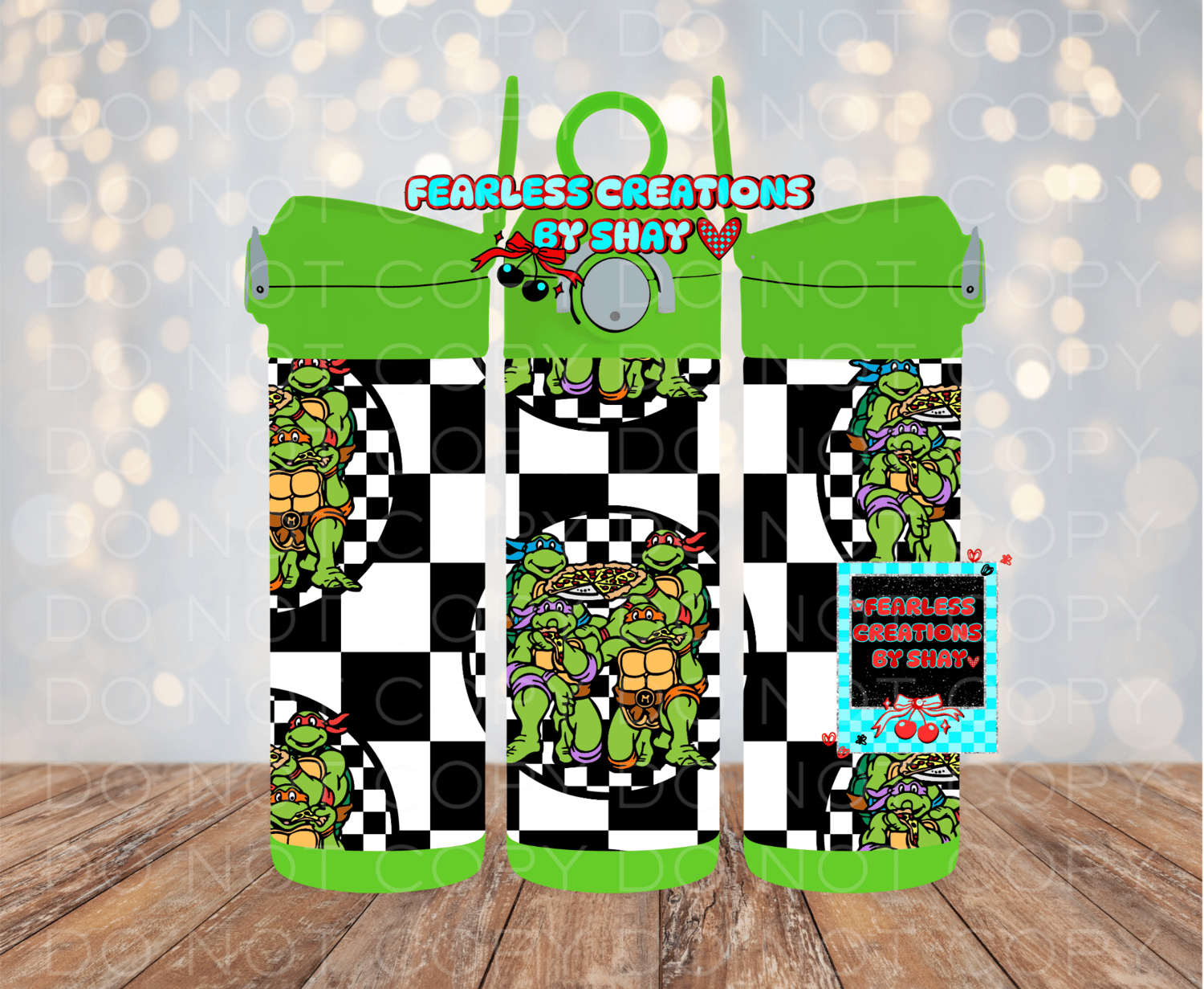 Each design is sublimated directly on the tumbler.