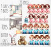Cute Chibi girl and boy babies, includes 2 backgrounds and accessories. 25 PNG files. Nursery, baby shower, baby gift. Sublimation, print.