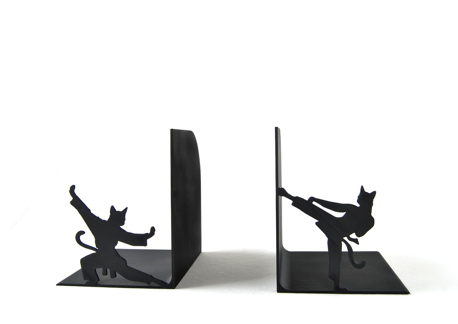Bookends depicting some karate cats. 3d printed in PLA, painted in black.