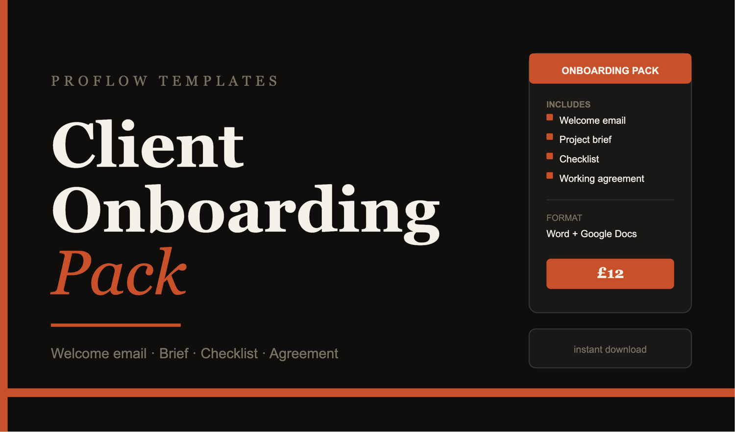 Works in Word and Google Docs. Just download, add your details, and you're ready to onboard your first client professionally.