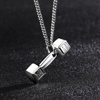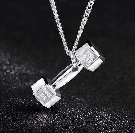Korean Fashion Fitness Lettering Dumbbell Necklace Men's Pendant Domineering Titanium Steel Personality Couple Girls Simple Jewelry