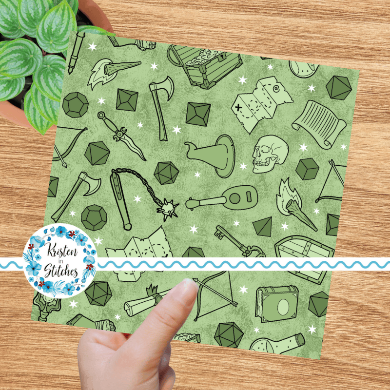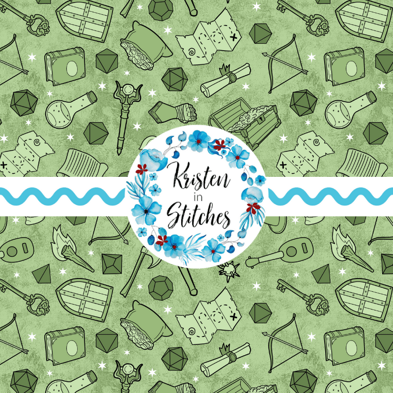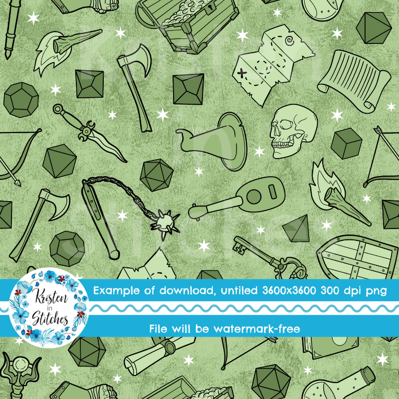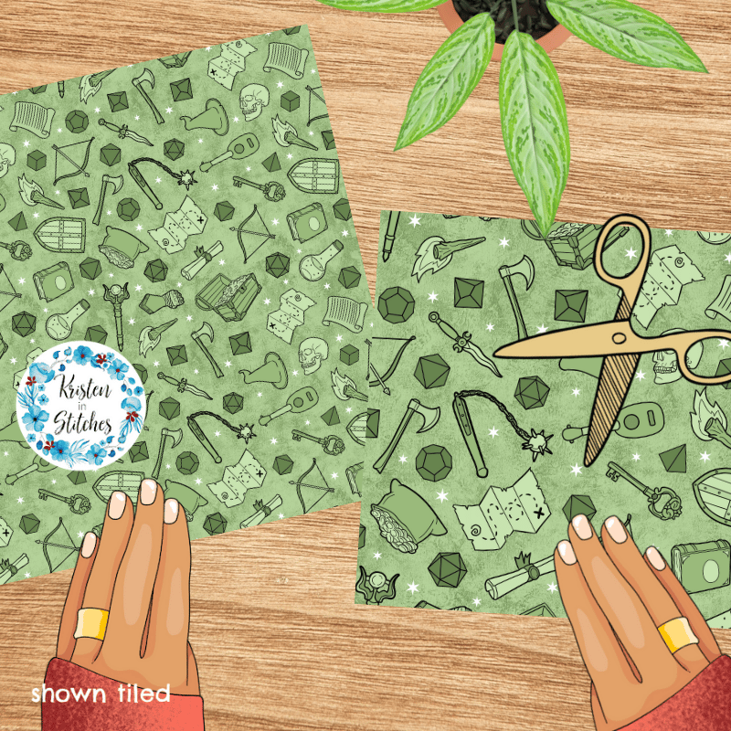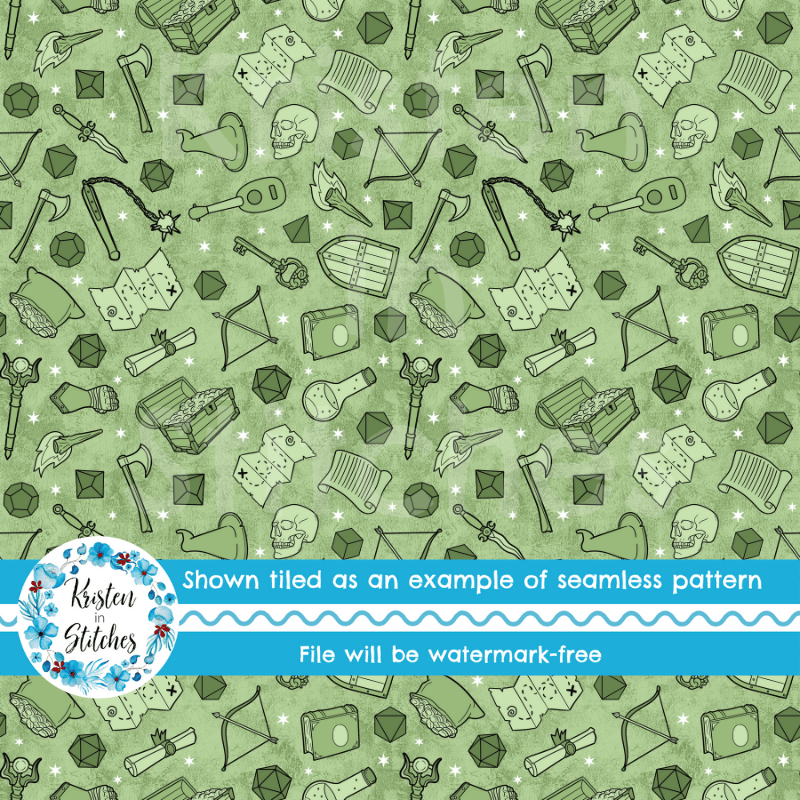 Fantasy Games Seamless Pattern, RPG DND Adventure, Polyhedral Dice, Green