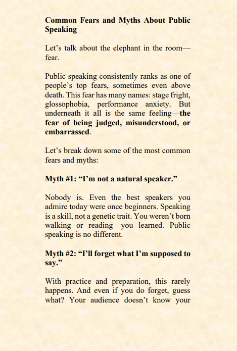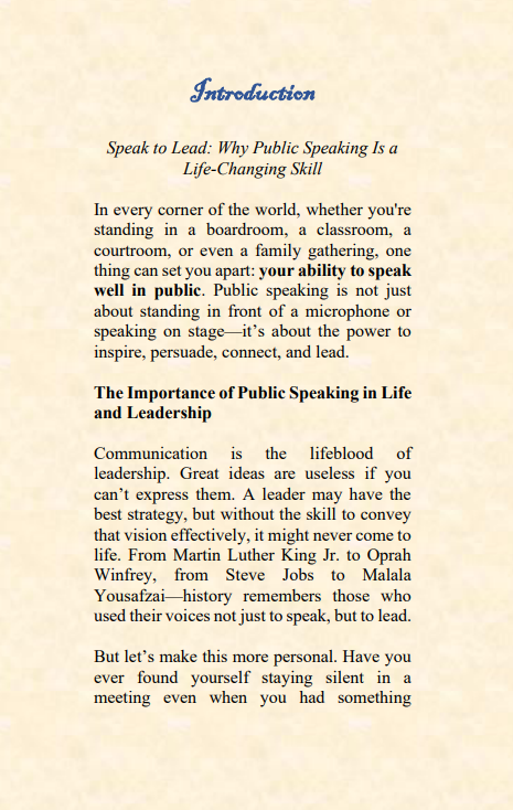Public speaking is no longer optional—it's essential. Whether you're pitching an idea, leading a team, teaching a class, or inspiring a crowd, your ability to communicate with clarity and confidence can define your success.