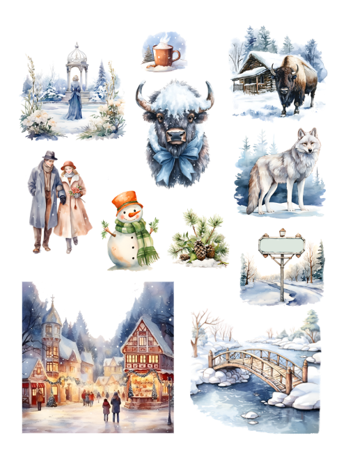 Frosty Winter Ephemera to Cut and Collage Printable Version