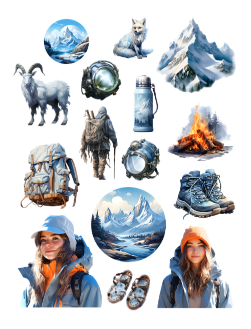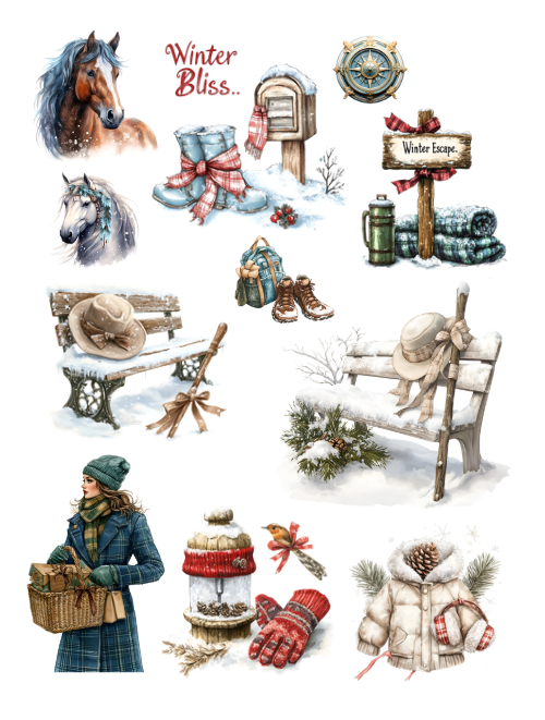 This beautiful cut and collage frosty winter ephemera book features absolutely gorgeous elements including wreaths, flowers, camping gear, mountains, trees, scenery, snowy vistas, beautiful women, Santa Claus, fireplaces, Christmas trees, gingerbread cookies, presents, snow owl, snow leopard, stockings, blankets, warm clothing, houses, window scenes and much more. Decorate your planner with these lovely ephemera pieces, it's all the rage!