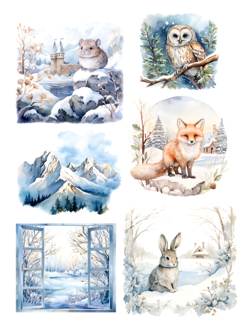 This Cut and Collage Frosty Winter Ephemera Book features: