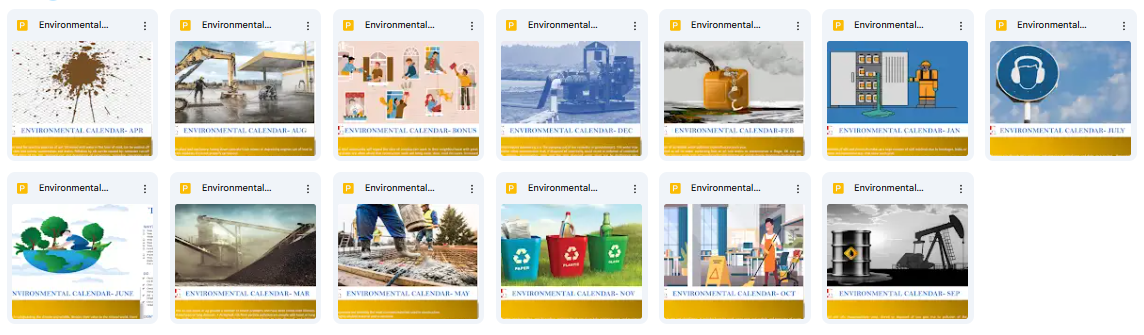 This Environmental Calendar provides a structured approach to handling monthly environmental challenges, supporting compliance, safety, and sustainability throughout the year.