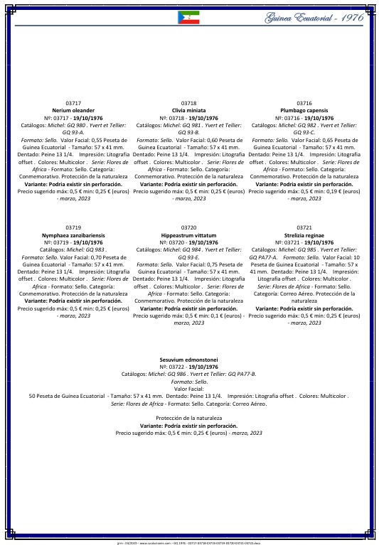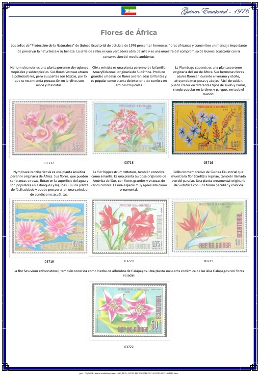 Guinea Ecuatorial 1976 – Flores · Ficha filatélica PDF · Catálogo Sooluciones GQ-1976-03717-03718-03716-03719-03720-03721-03722