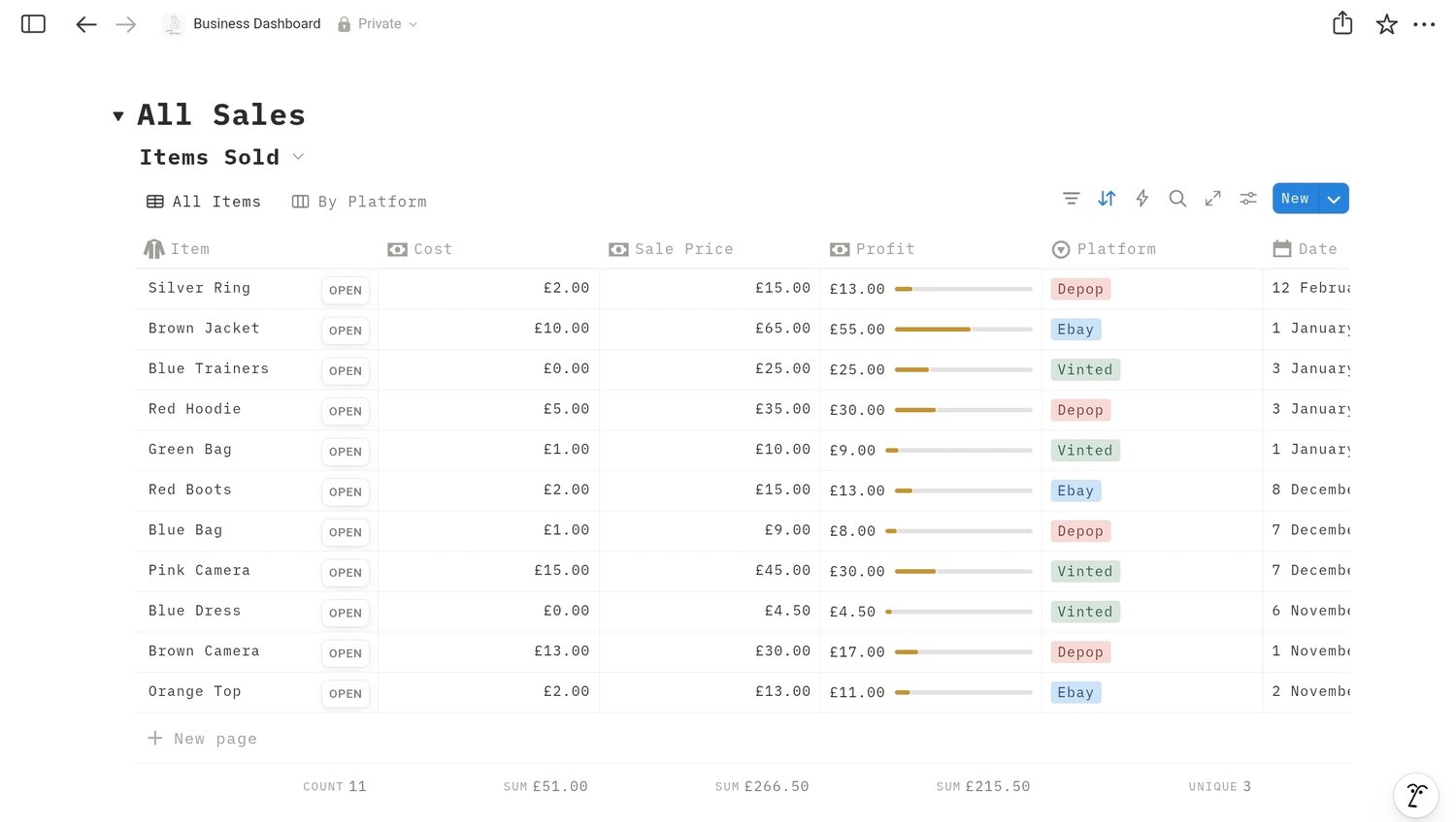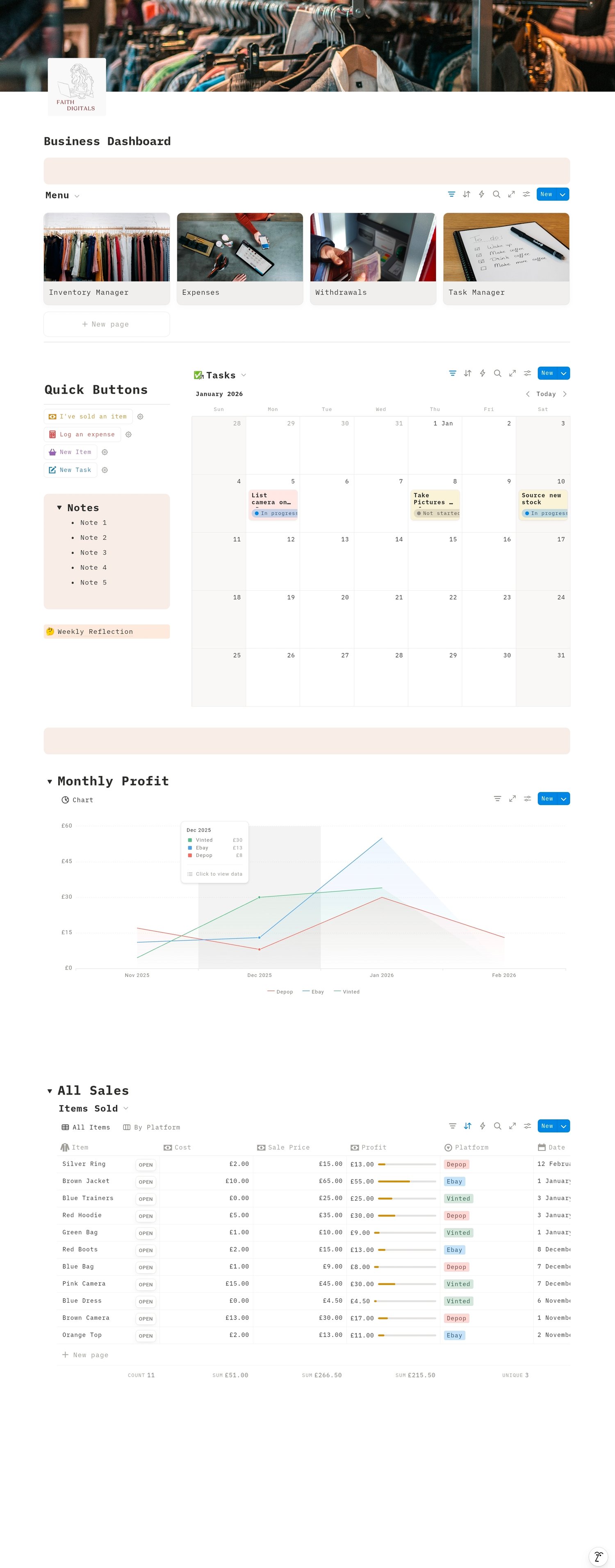 Notion Template - Business Dashboard for Vinted, Depop, eBay & all online selers