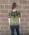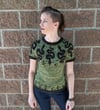 Witchy, woodsy, and unexpected, the Copperhead Tee is a top-down stranded colorwork tee featuring a yoke of snakes, pine trees, crescent moons, and stars. With its engaging colorwork and short sleeves, this sweater comes together in no time and makes a great spring/fall transitional piece. Nine sizes and modification options for a straight waist or shorter length are included so each knitter can really make this top their own.