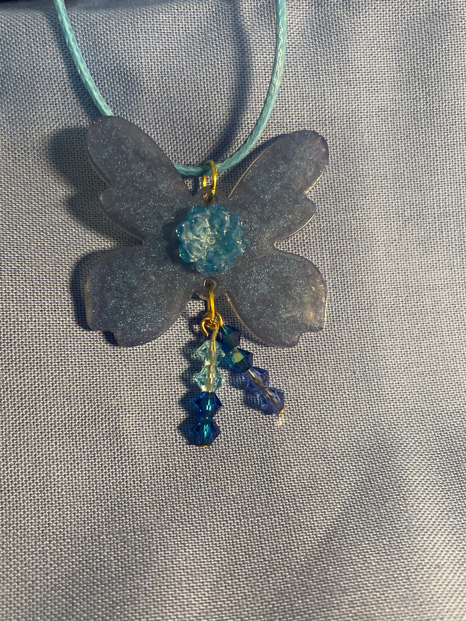 Beautiful butterfly with an added flower in the center with some beads very unique one of a kind