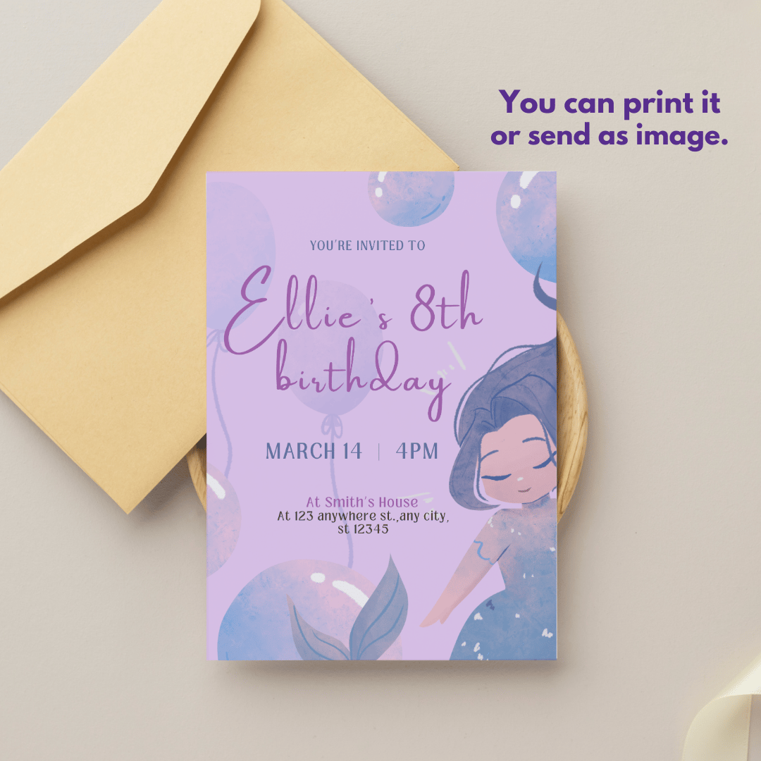 Celebrate your child’s special day with this delicate and classic mermaid-themed birthday invitation!