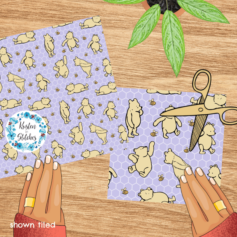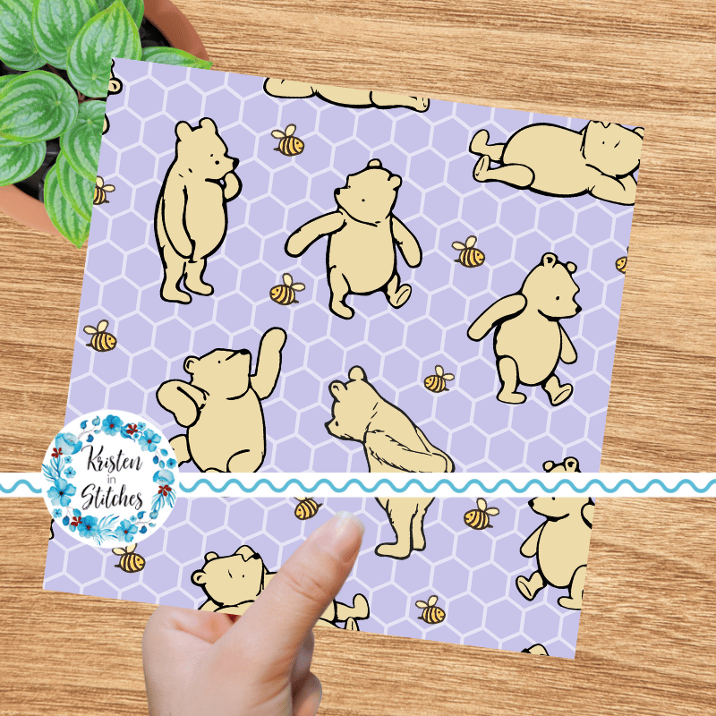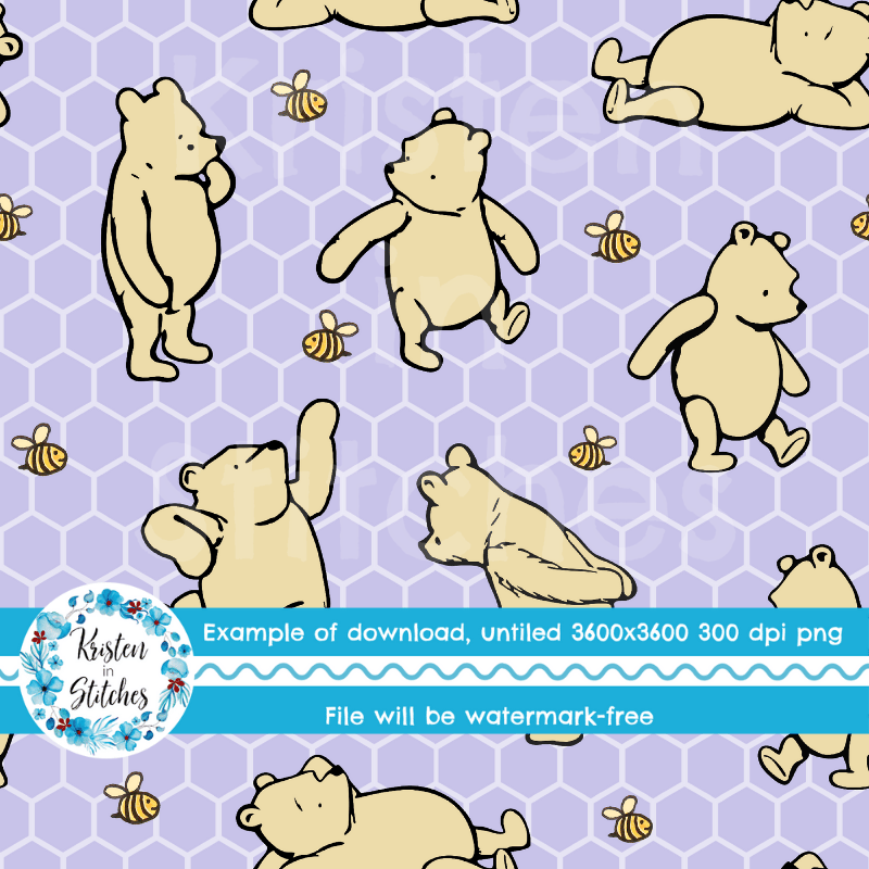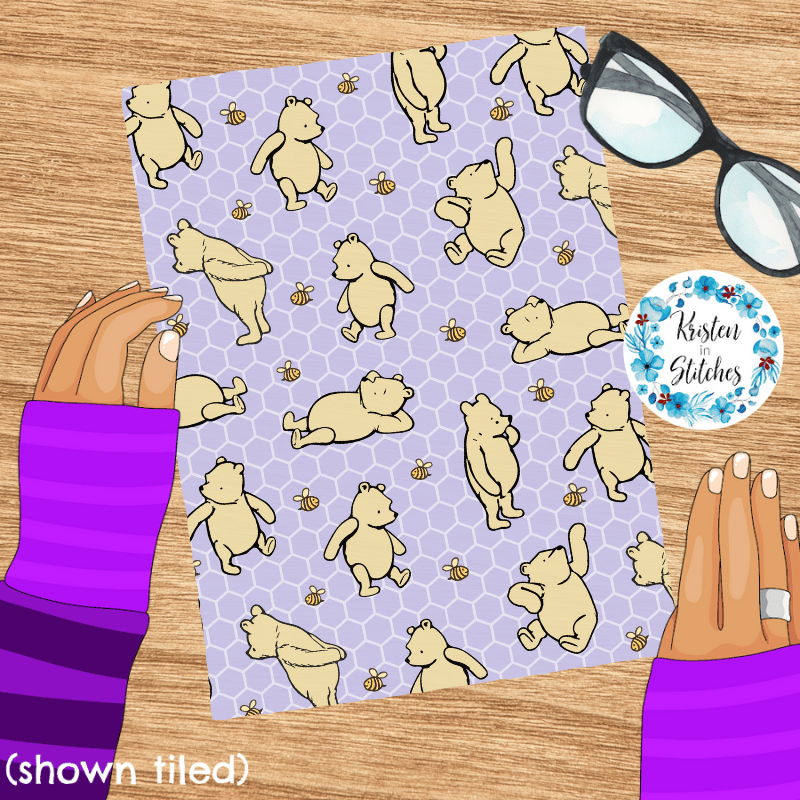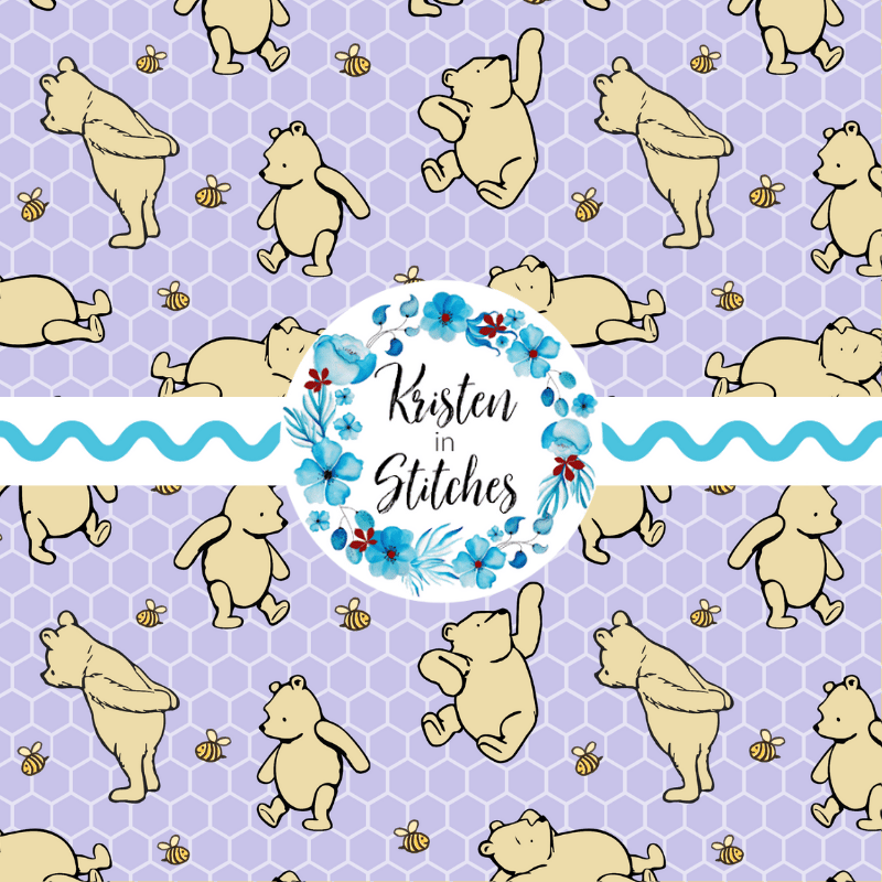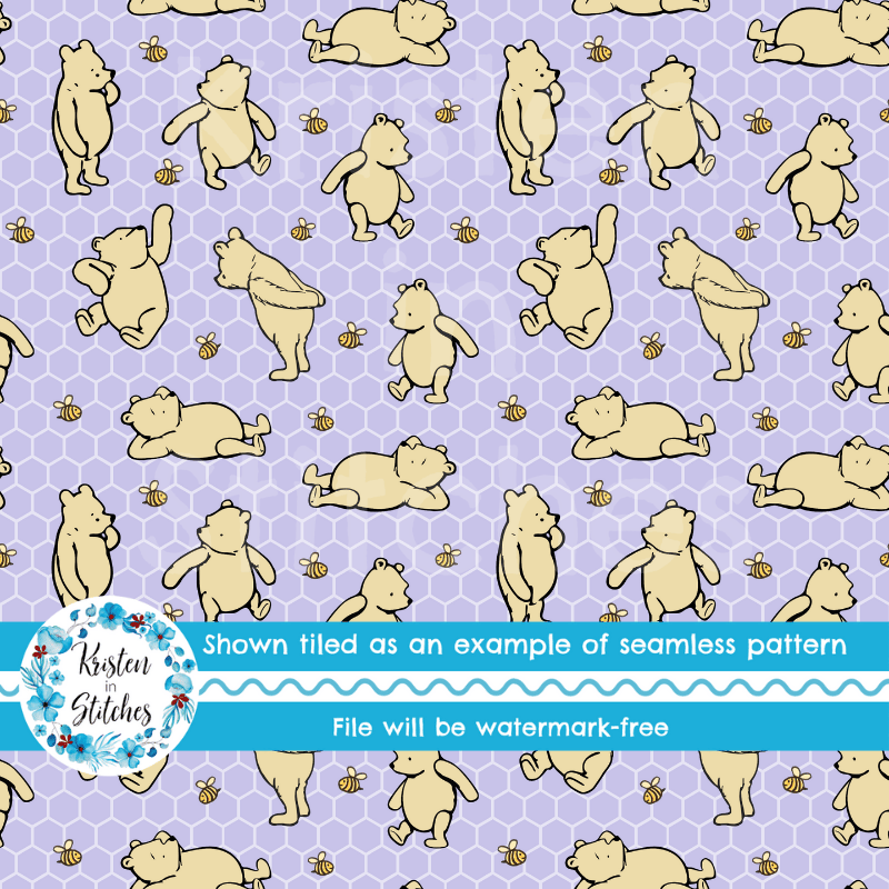 Classic Winnie the Pooh and Bees Nursery Seamless Pattern, Lavender Honeycomb