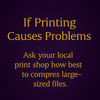 Files over 20 MB can be shared with your print shop via WeTransfer, Google Drive, or Dropbox.