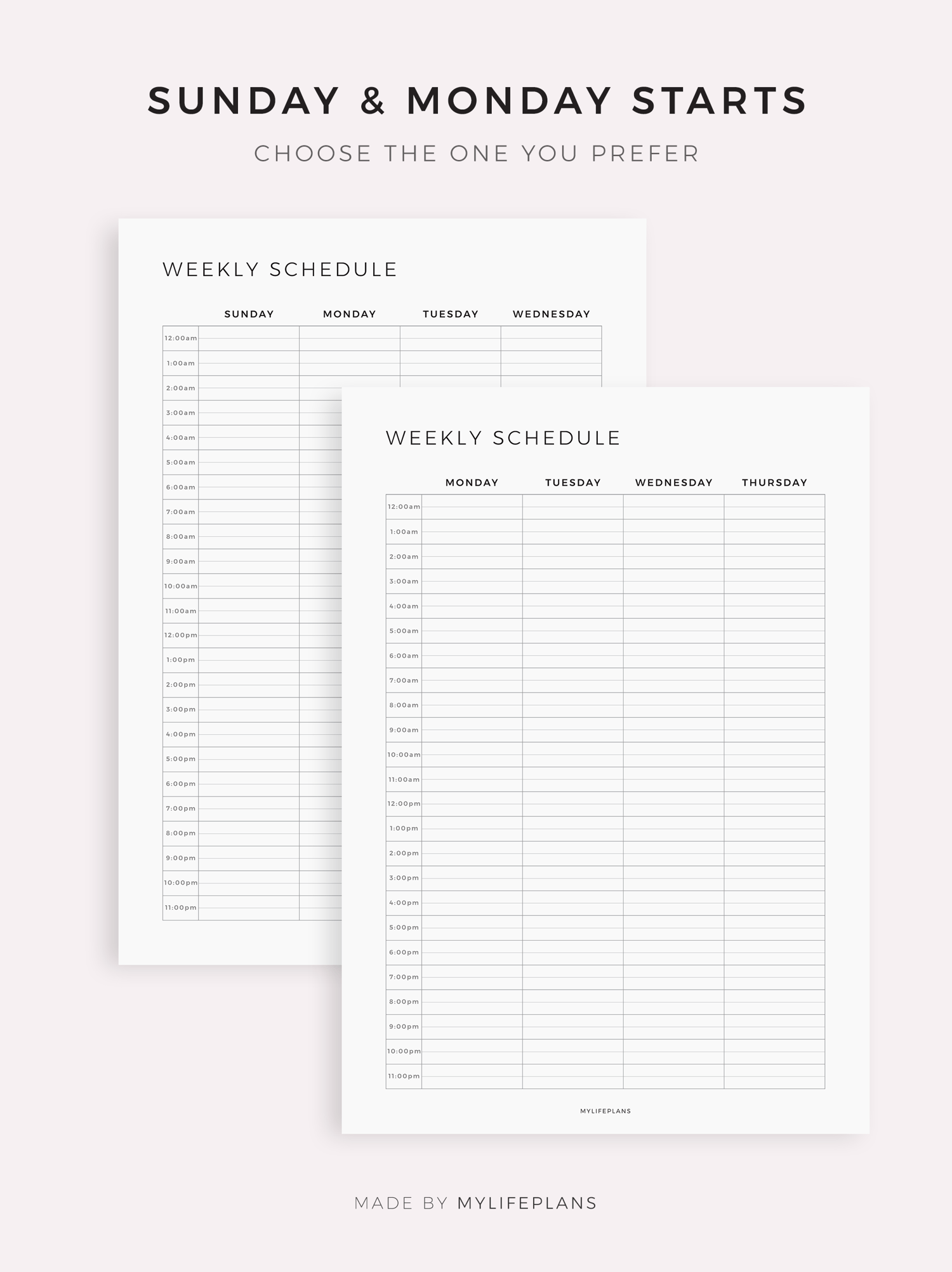 24 Hour Weekly Schedule on 2 Pages, Compatible with Remarkable, Supernote, Kindle Scribe, Boox, Kobo