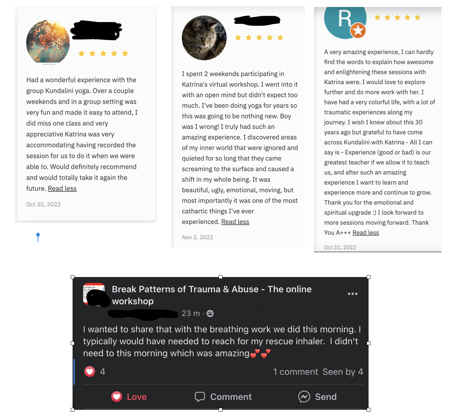 ✅ The Crown chakra - We will revisit all of the other chakras through meditation and release the feelings we have of disconnectivity to others around us. Releasing this chakra is about resetting your system. When you have done this, you are able to experience inner peace. This is an experience, and you can see below what some people have said about this in the last workshops