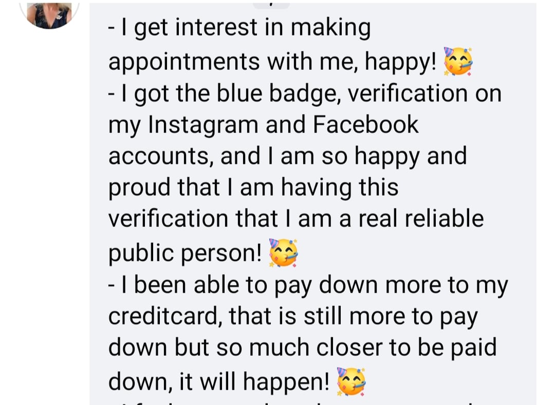 "I have created a multiple ROI on the investment into this program back shortly after completed it! Wow, what an amazing win. The healing part was so emotional but totally worth the work. I am so happy with the outcome and can now breath knowing that my financial stability is secured. Thank you!"