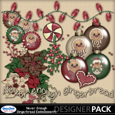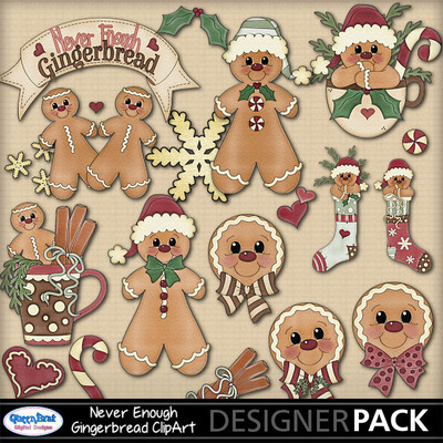 A cute Christmas gingerbread kit in muted reds, greens, brown, and cream. This is a very cute clip art kit and a must have for your Christmas projects.