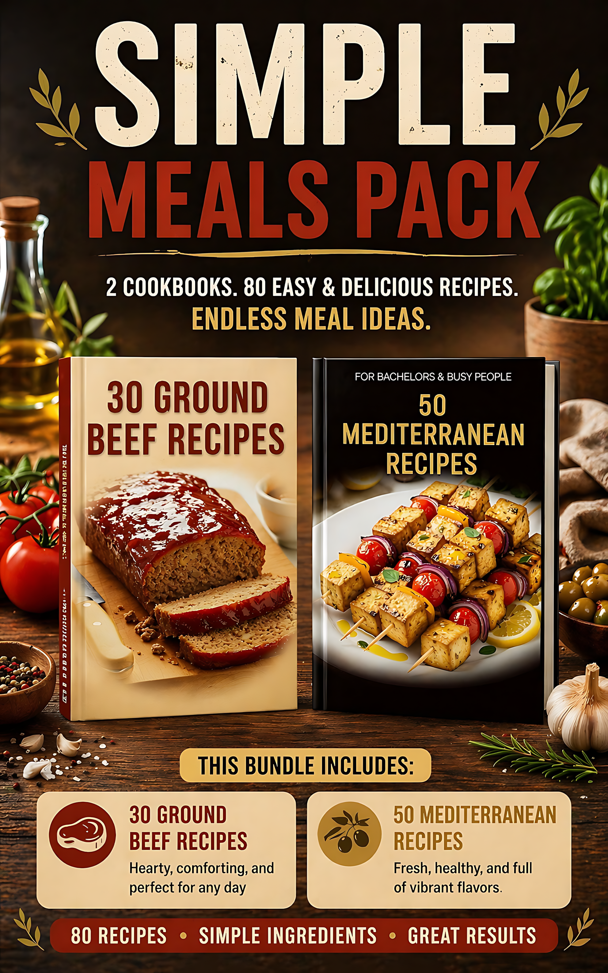 Simple Meals Pack is a digital recipe bundle with easy ground beef dinners, and Mediterranean meals for fast, stress free home cooking.