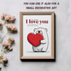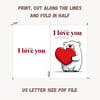 Simple Printable Romantic I Love You Card with a Bear Holding Heart