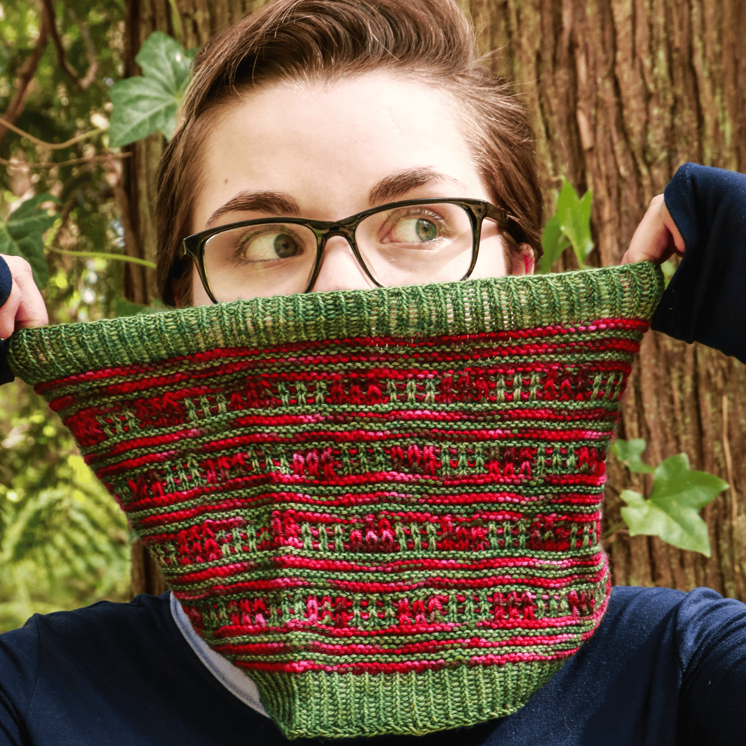 This cowl is knit using the magic loop method.