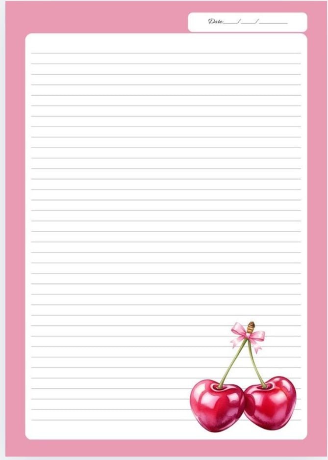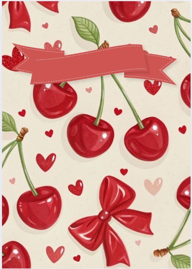 • Soft pink borders with cute cherry illustrations 🍒