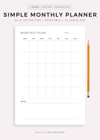 Simple Monthly Planner, Printable & Fillable, A4/Letter Size