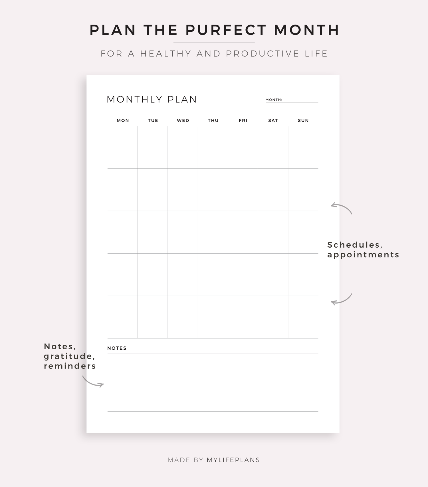 This is a printable monthly planner — just download, print, and start using it right away.