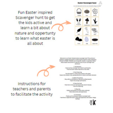 - Easter-themed adventure: Participants will embark on an Easter-themed adventure, searching for items like blooming flowers, bird nests, and colorful egg-shaped stones.