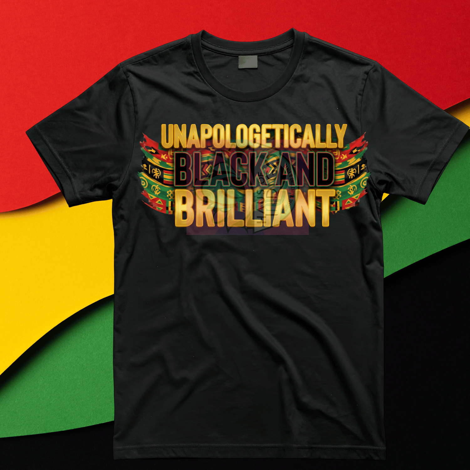 - The phrase "UNAPOLOGETICALLY BLACK AND BRILLIANT" is arranged in three stacked levels.