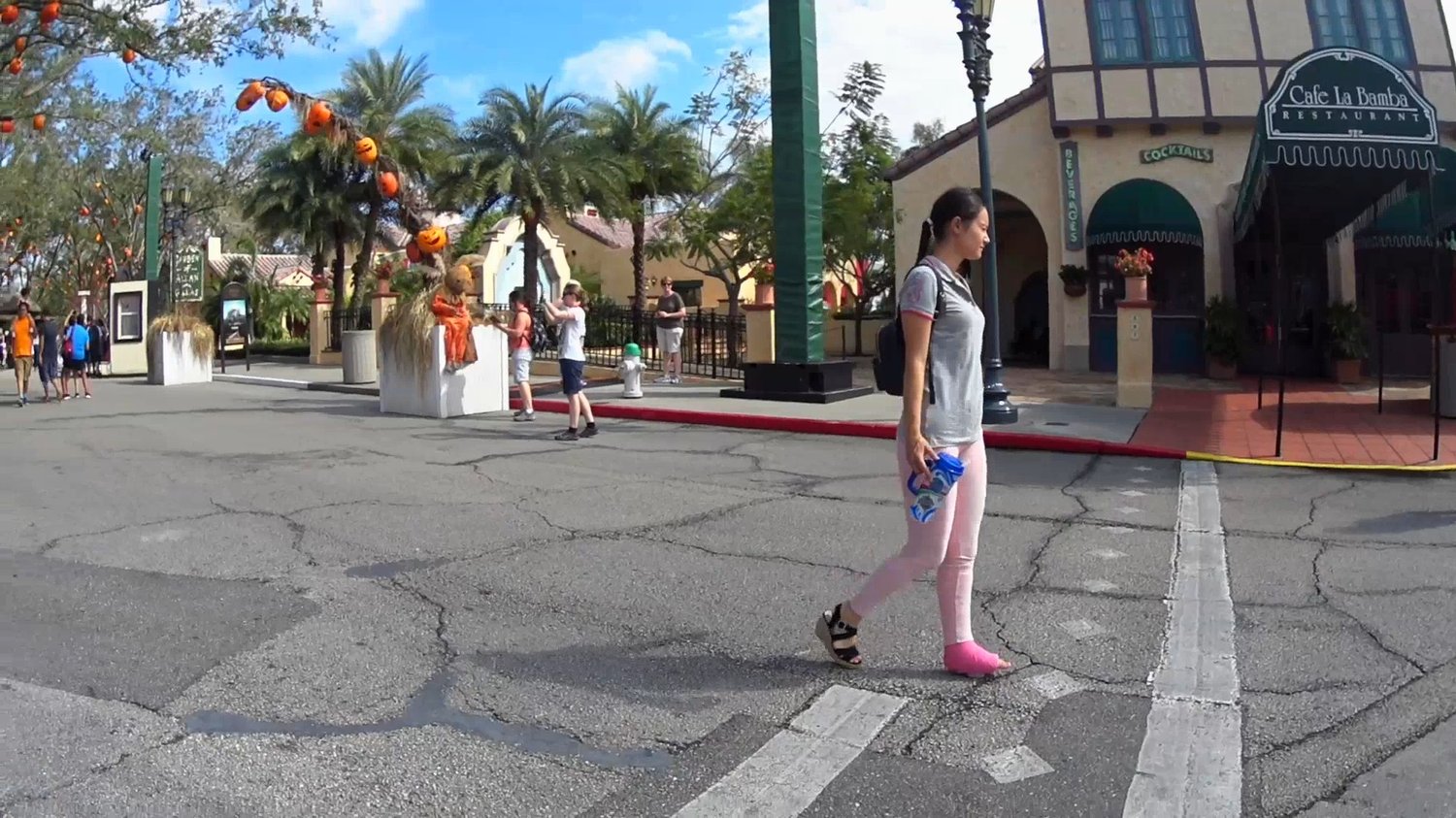 Elisabeth is on her way out from Universal Studios in Orlando when she see some cartoon character.She walks past the Simpson Family, Scooby Doo before Betty Boop starts talking to her and she's impressed with Elisabeth's pink short leg walking cast.She even asks Elisabeth so she's alright and doesn 't it look like Betty Boop seems a little interested in Elisabeth's cast?